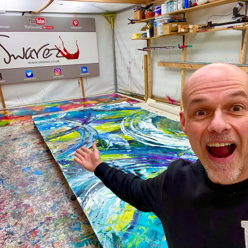 Swarez Art Academy is not just another visual art business school – with the same old training everyone else offers – you will learn from the best in the industry. The Swarez Modern Art team, consisting of Ed Swarez and Ady Webb, are Britain’s leading modern artists who have built a thriving business from the ground up. Working with Paula Telizyn, who has been both a professional artist and a certified coach, the Swarez Art Academy team is uniquely qualified to help you learn how to set up and run your unique art business.